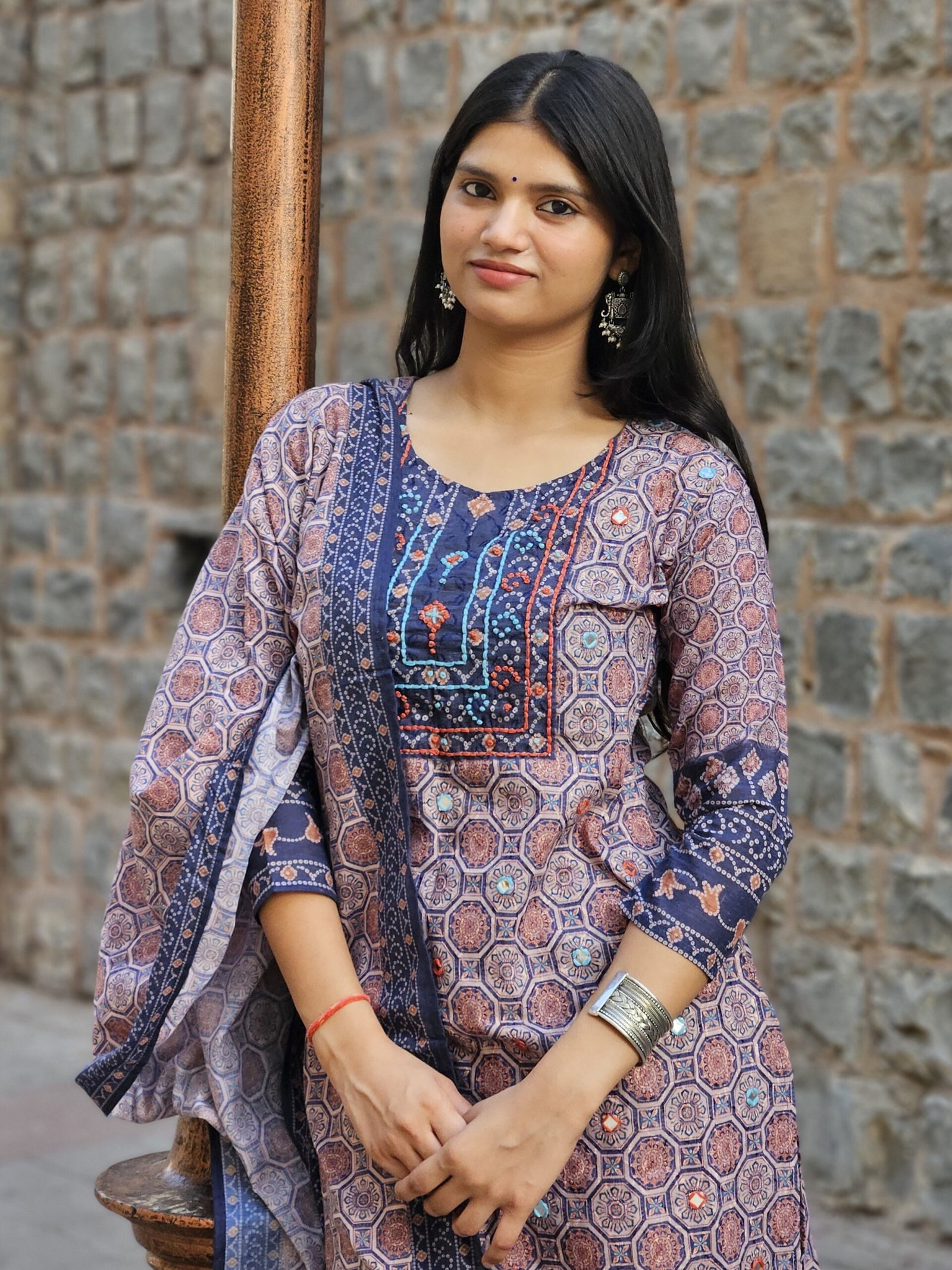 Ajrakh Cotton Printed Embroidered Straight Suit