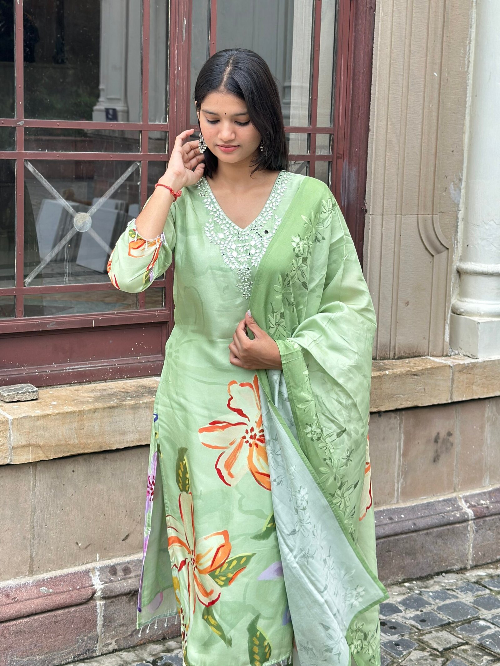 Lush Leaf Mirror Embroidered Suit Set