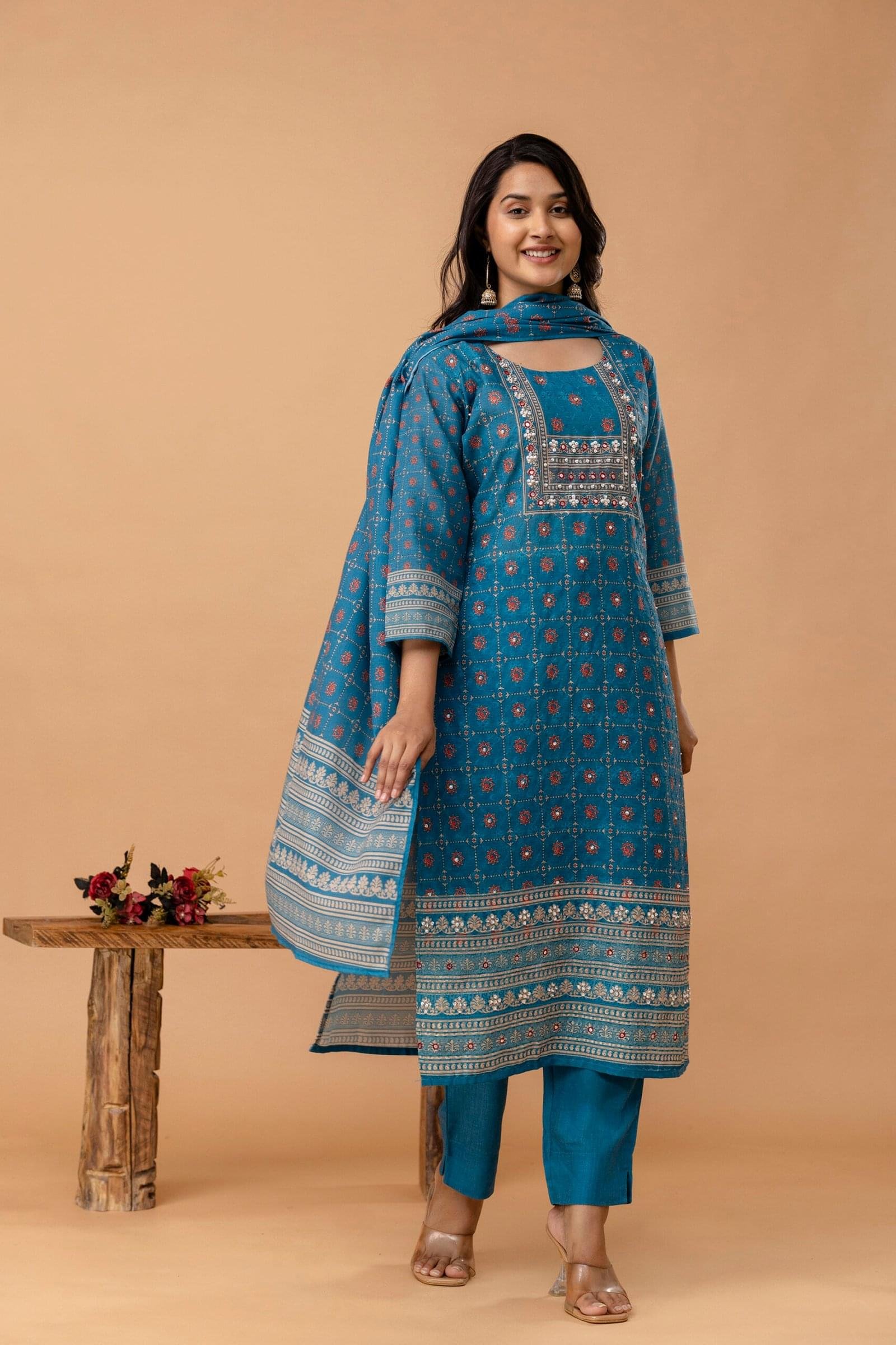 Be the first to review “Teal blue Schiffli Cotton Embroidered Straight Suit” Cancel reply