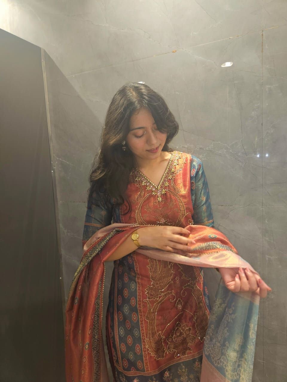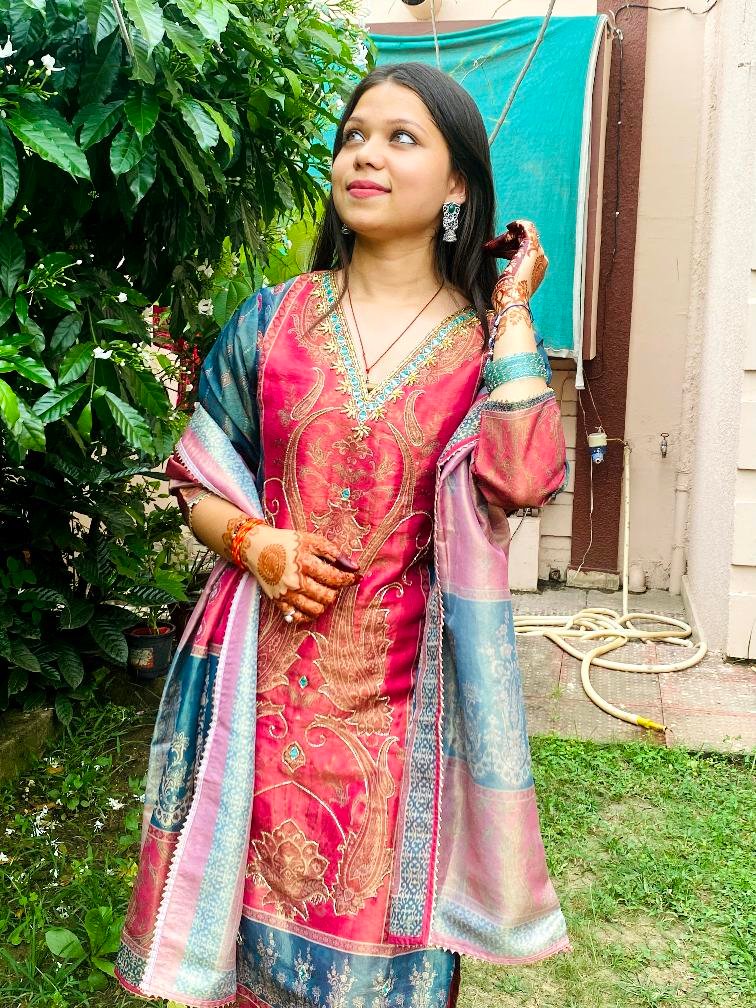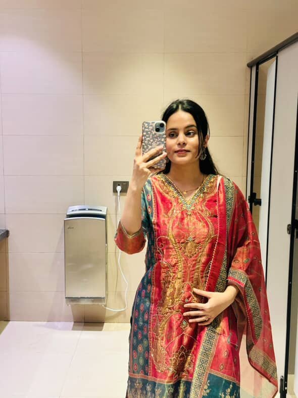 Very pretty suit. I loved the fitting. And it looks so pretty and perfect. The fabric is very comfortable and the dupatta has my heart. And you will also get pockets in the salwar, Go for it🫶🏻🩷🎀