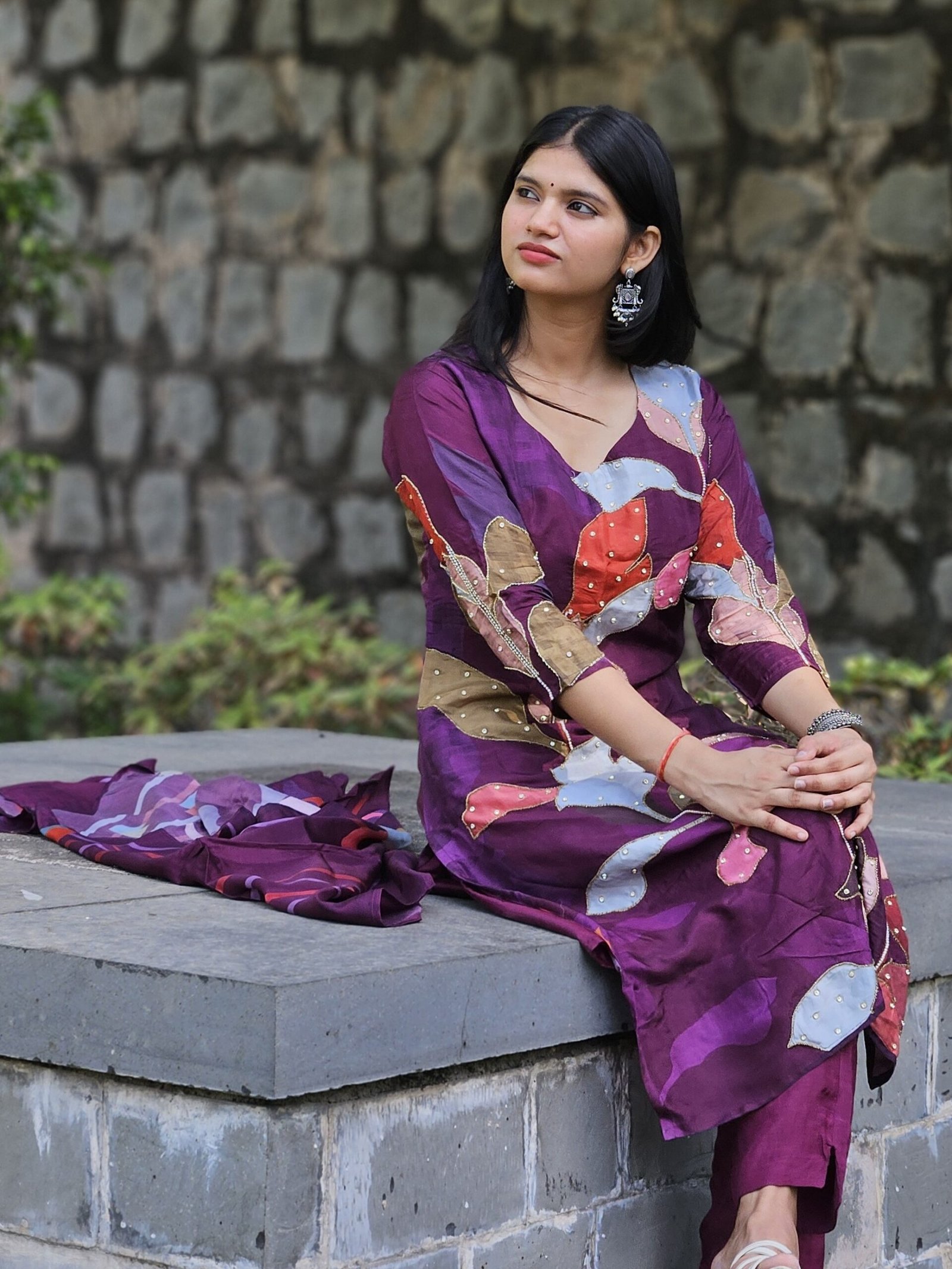 Orchid Raw Silk Embroidered Straight Suit